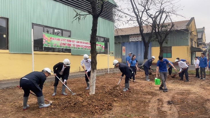 Hưởng ứng Tết trồng cây, xưởng Đúc tổ chức trồng cây xanh xung quanh khu vực nghỉ giải lao của người lao động, vừa tạo cảnh quan xanh-sạch-đẹp vừa tạo bóng mát cho người lao động.