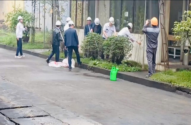 Đ/c Ngô Anh Tuấn, Trợ lý GĐ và đ/c Nguyễn Thanh Bình, Phó CTCĐ công ty và các đồng chí lãnh đạo xưởng Đúc chụp ảnh lưu niệm tại địa điểm trồng cây.